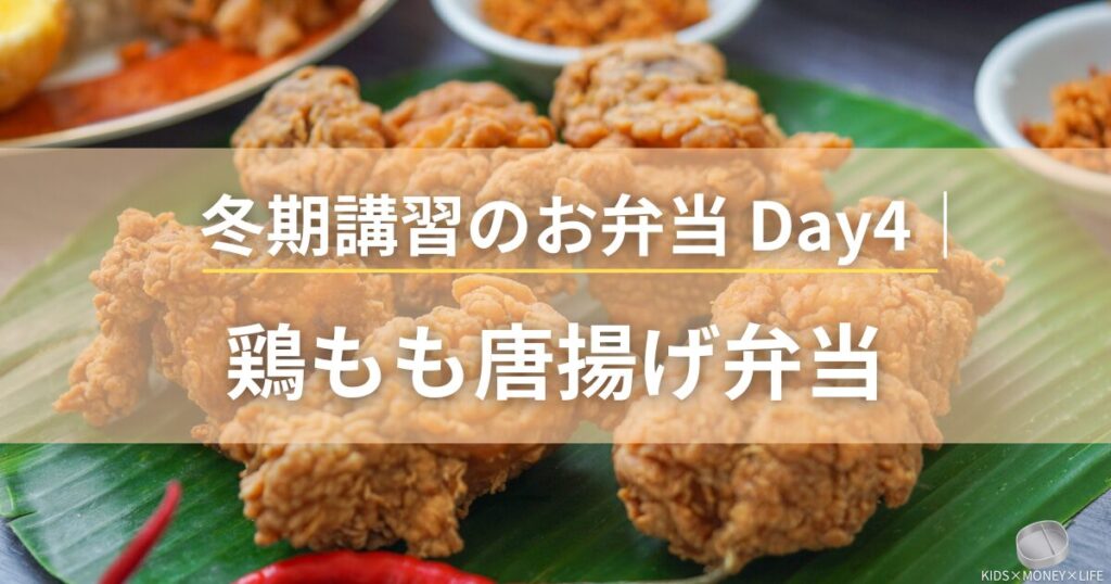 鶏もも唐揚げ+ひじき煮+白ごはん** 講習も折り返し。Day4は「今日はちょっと頑張りたい」「午後も長い」日に向けた満足感重視の“がっつり弁当” に。 唐揚げは、受験生にとって気持ちもエネルギーも上がる定番おかずです。 本日のメニュー(Day4) 鶏もも...