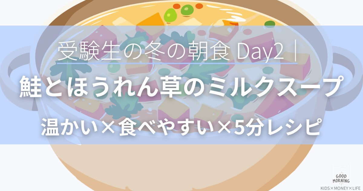 受験生の冬の朝食 Day2|鮭とほうれん草のミルクスープ(5〜7分)