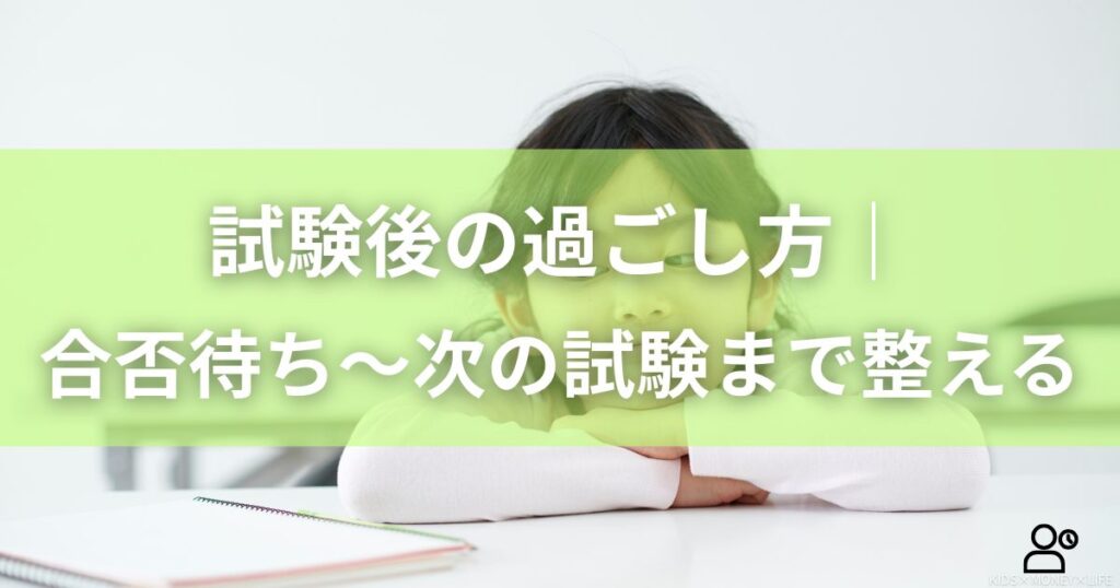 声かけテンプレ&やることリスト 試験が終わった直後、親子ともに気が抜けます。でも、まだ次の試験がある場合は特に、ここからの過ごし方が大事。 「どうだった?」と聞きたくなる 子どもが落ち込んでいる/逆に元気すぎる 合否が気になって親がソワソワ...